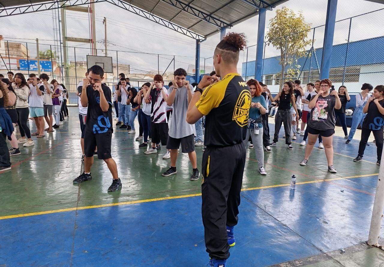 Em seguida, no dia 24 de outubro, a equipe LISOBOXE esteve na Escola Estadual Francisco Euphrasio Monteiro, com os professores Juliano Ramos e Leandro Coelho e instrutores Luiz Carvalho, David Guedes, Alison Ribeiro e Laryssa Galdino, atendendo 112 adolescentes do Ensino Médio. O professor da escola, Diogo Kerne, também um entusiasta e aluno do projeto social “Boxe: Uma Luz para o Futuro”, comentou: “Sempre quis me tornar atleta, mas segui outro caminho e me formei como professor de Química. Fiquei muito feliz em receber a equipe LISOBOXE no meu local de trabalho; foi uma ótima experiência para esses adolescentes.”